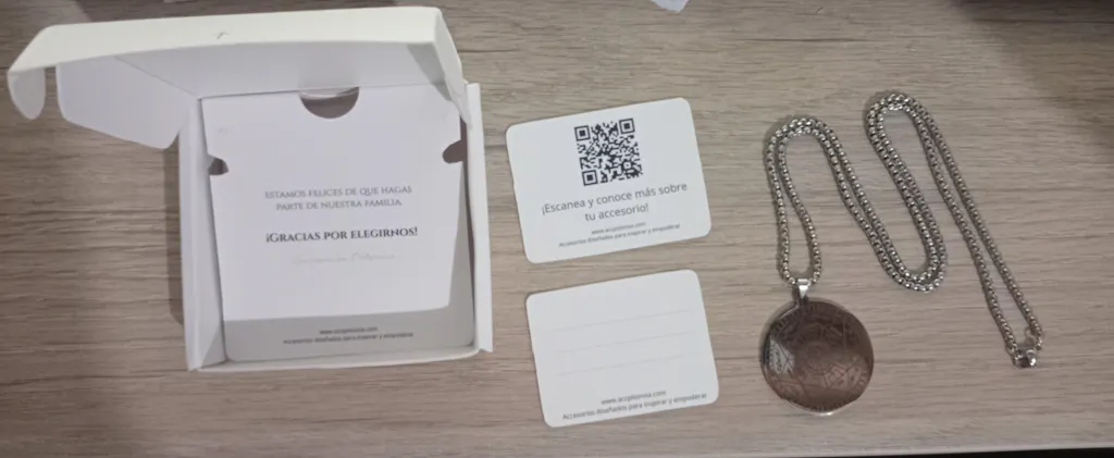 Incluye cadena de 60 cm, cómodo y adaptable a cualquier estilo.